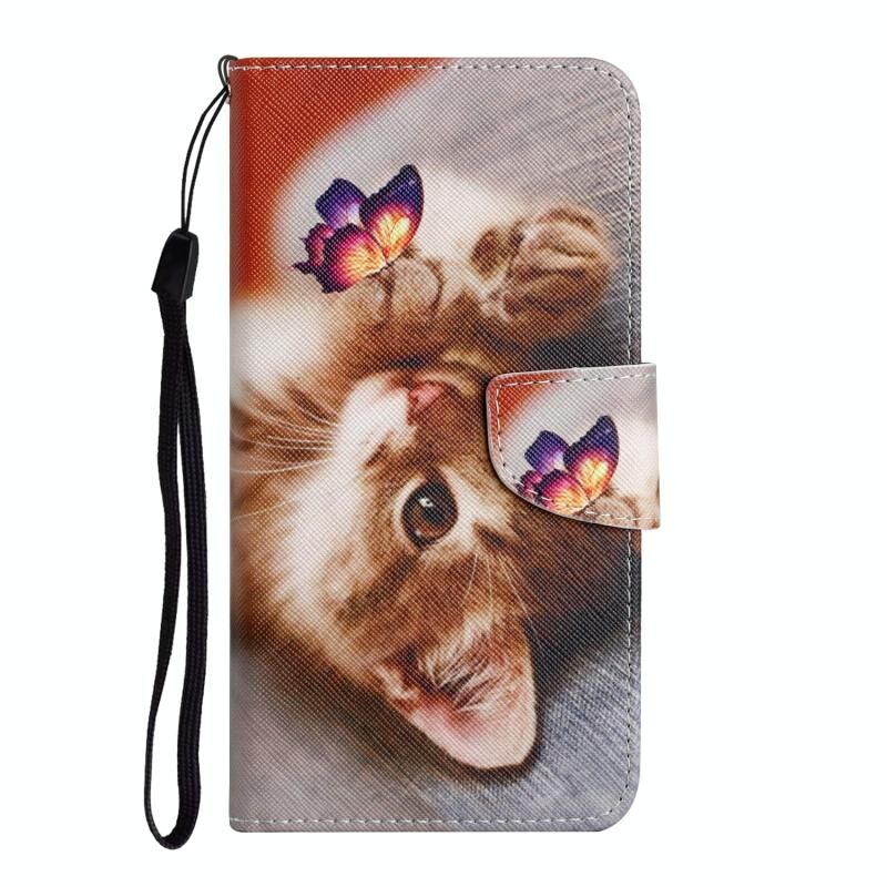 Θήκη δέρματος με σχέδιο πολύχρωμης ζωγραφικής και αναδιπλούμενο καπάκι για Xiaomi Redmi Note 11 4G (Πεταλούδα Γάτα)