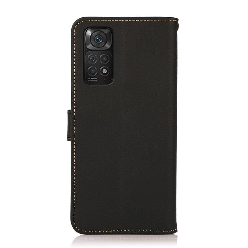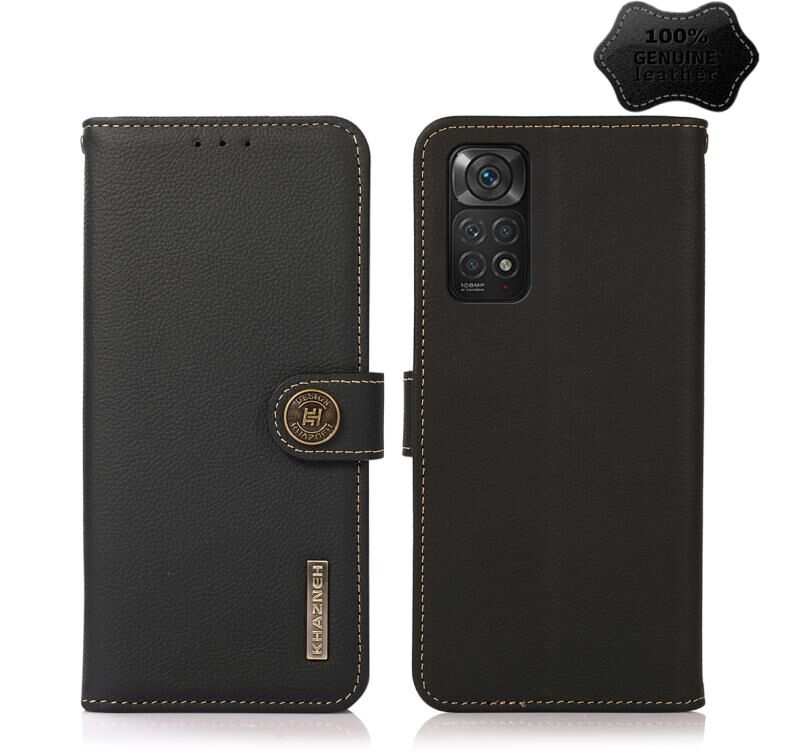 Για Xiaomi Redmi Note 11 4G Ξένη Έκδοση KHAZNEH Custer Γνήσια Δερμάτινη Θήκη Τηλεφώνου RFID (Μαύρο)