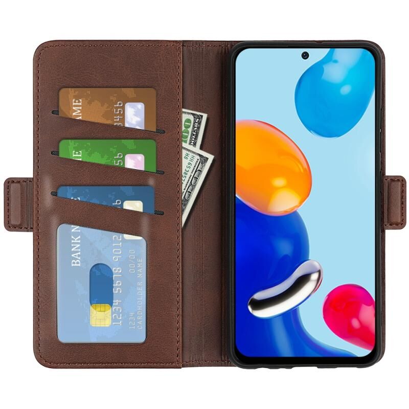 Για Xiaomi Redmi Note 11 4G / Note 11S Διπλής όψης μαγνητική πόρπη δερμάτινη θήκη τηλεφώνου (Καφέ)