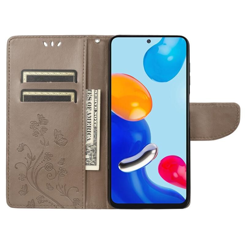 Θήκη τηλεφώνου από δέρμα με ανάγλυφο σχέδιο πεταλούδας για Xiaomi Redmi Note 11 4G / Note 11S (Γκρι)