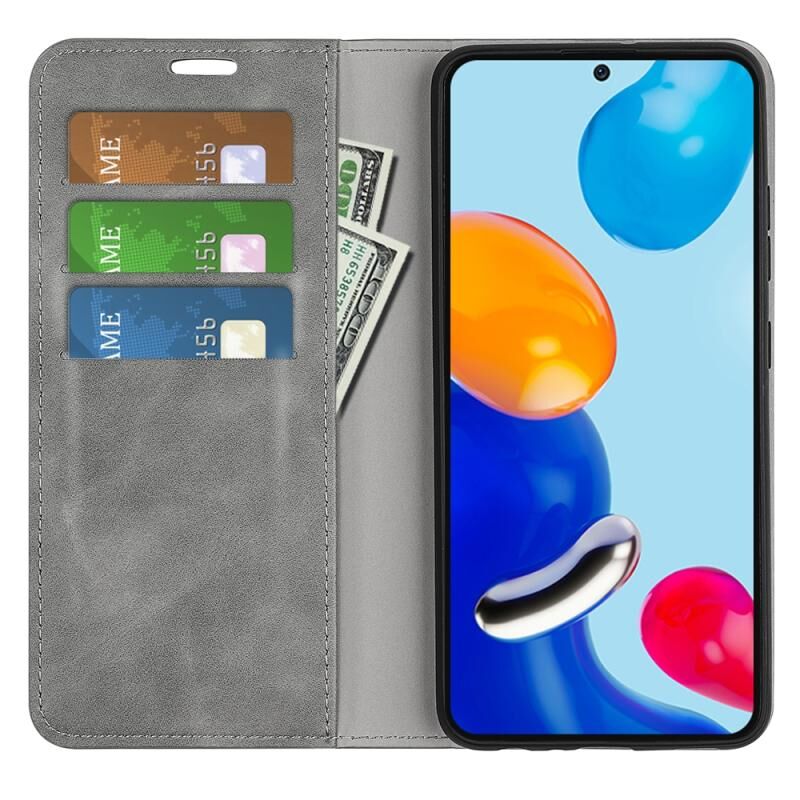 Για Xiaomi Redmi Note 11 4G / Note 11S Retro-skin Μαγνητική δερμάτινη θήκη τηλεφώνου αναρρόφησης (γκρι)