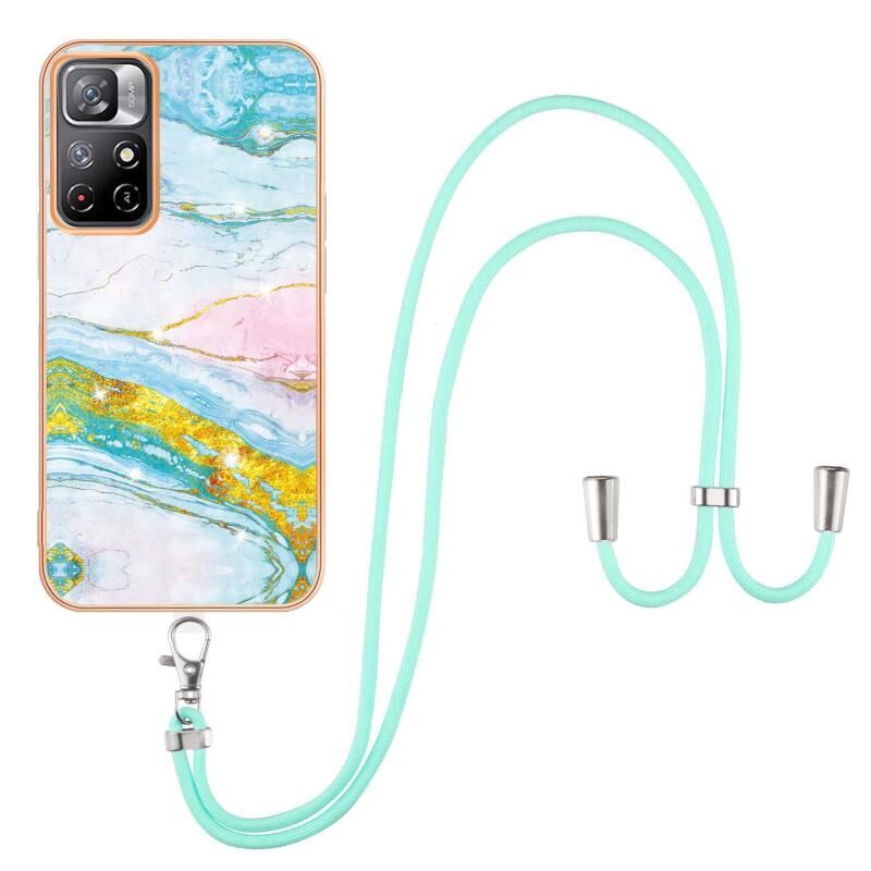 Θήκη τηλεφώνου TPU με ηλεκτρολυτική μαρμάρινη τεχνολογία IMD και λουρί για Xiaomi Redmi Note 11 5G (Κίνα) / Note 11T 5G (Ινδία) (Μωβ 001)