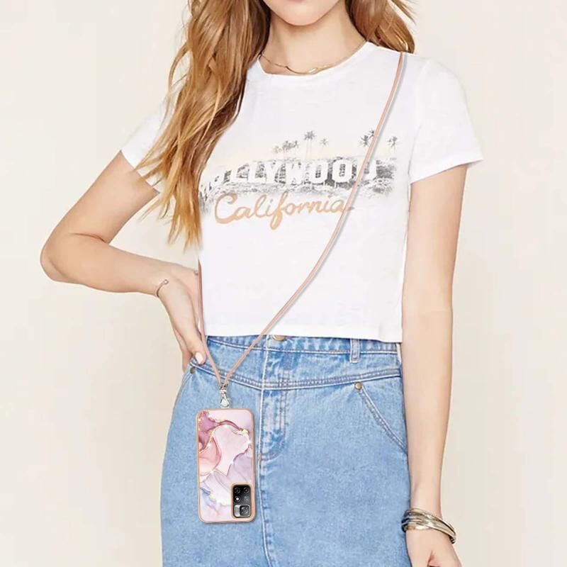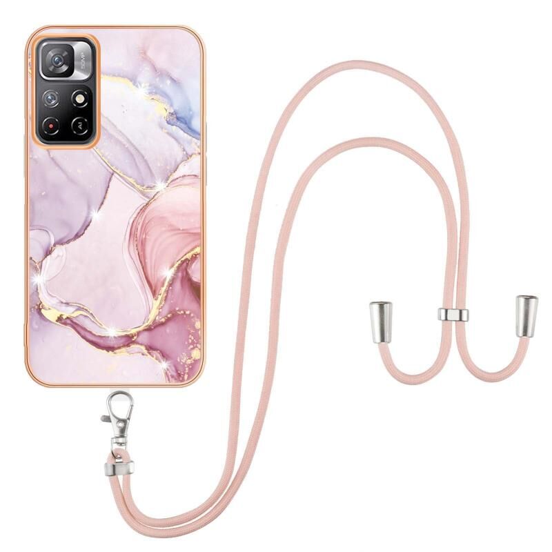 Θήκη τηλεφώνου TPU με ηλεκτρολυτική μαρμάρινη τεχνολογία IMD και λουρί για Xiaomi Redmi Note 11 5G (Κίνα) / Note 11T 5G (Ινδία) (Μωβ 001)