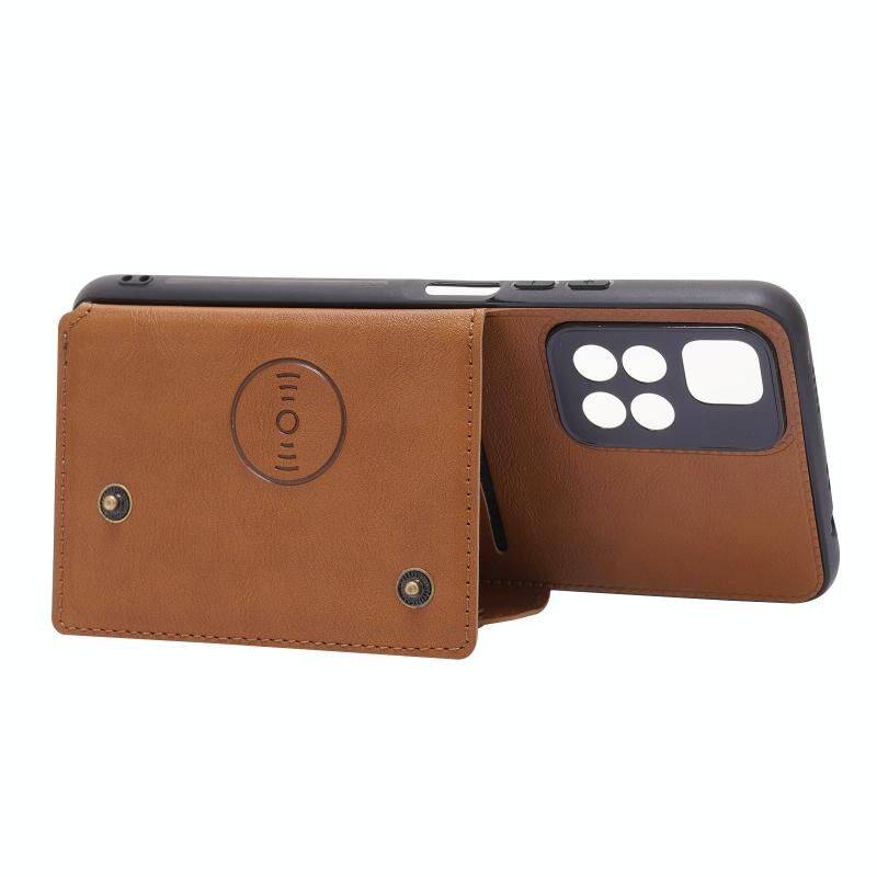 Για Xiaomi Redmi Σημείωση 11 5G κινεζική διπλή πόρπη PU + TPU Shockproof μαγνητική θήκη τηλεφώνου (καφέ)