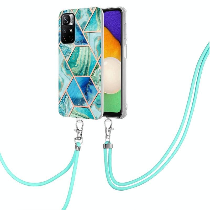 For Xiaomi Redmi Note 11 5G Chinese Electroplating Splicing Marble TPU Phone Case with Lanyard(Green)
