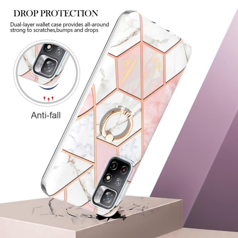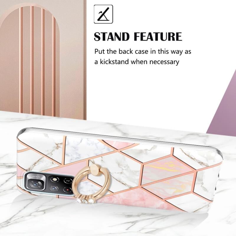 Για Xiaomi Redmi Note 11 5G Κινέζικη Επένδυση από Μάρμαρο Διπλής Όψης Θήκη IMD TPU με Δαχτυλίδι Στήριξης (Ροζ Λευκό)