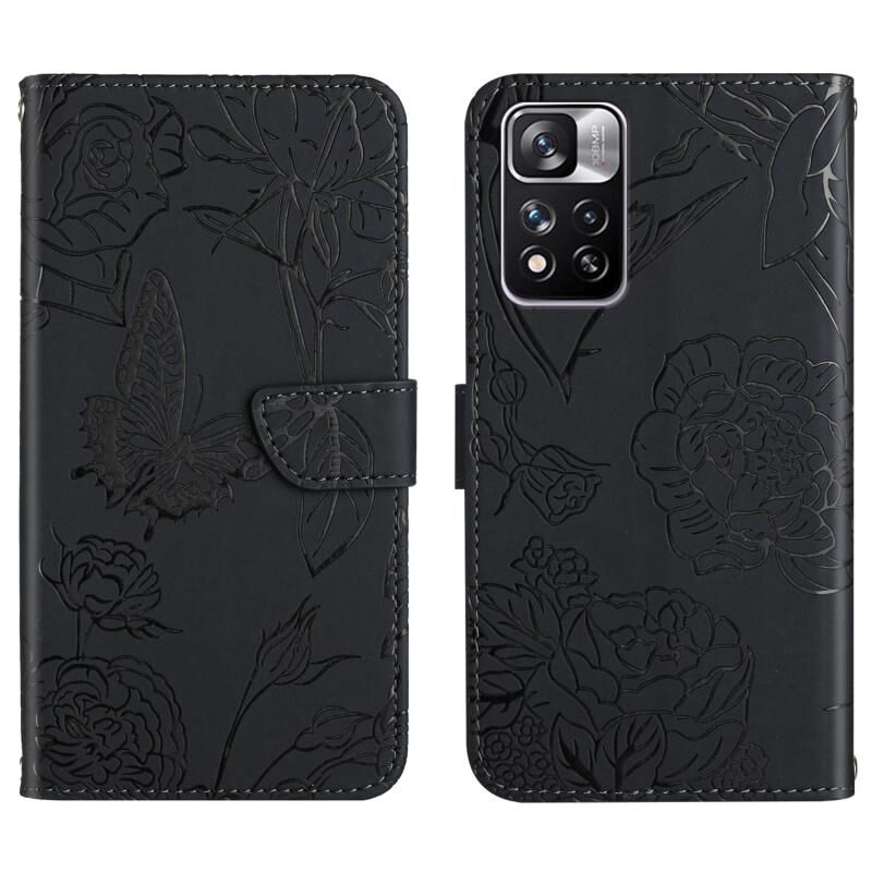 Θήκη τηλεφώνου από δέρμα με ανάγλυφο σχέδιο πεταλούδας και παιωνίας, αίσθηση δέρματος, για Xiaomi Blackmi Note 11 5G Κινεζική Έκδοση (Κόκκινο)