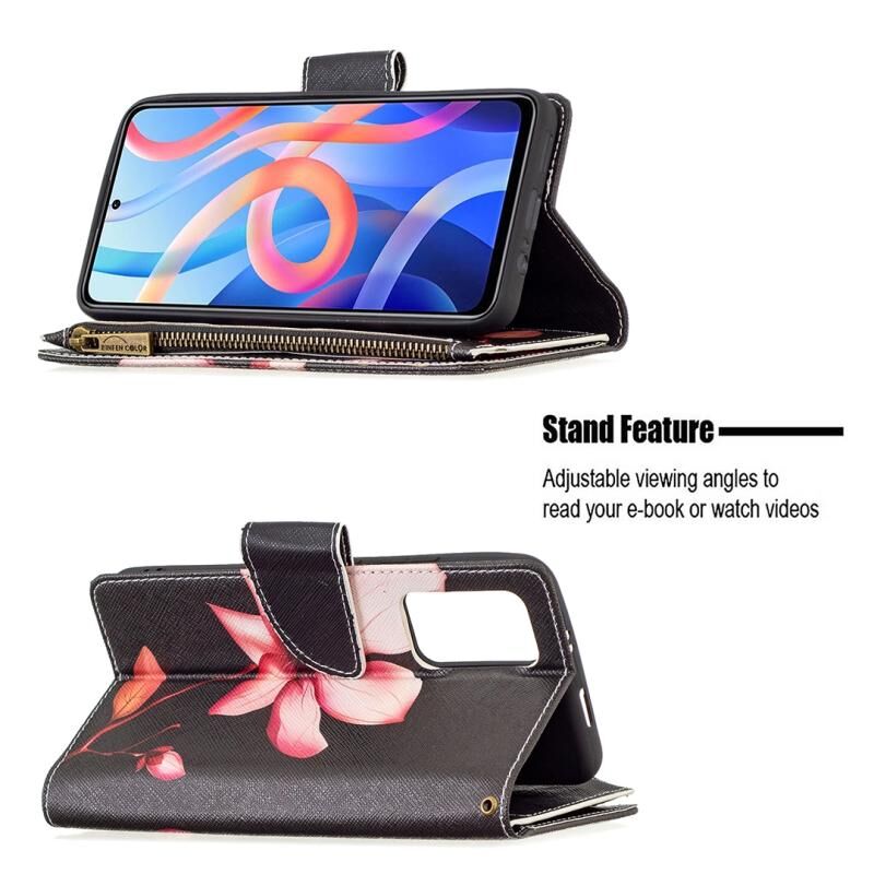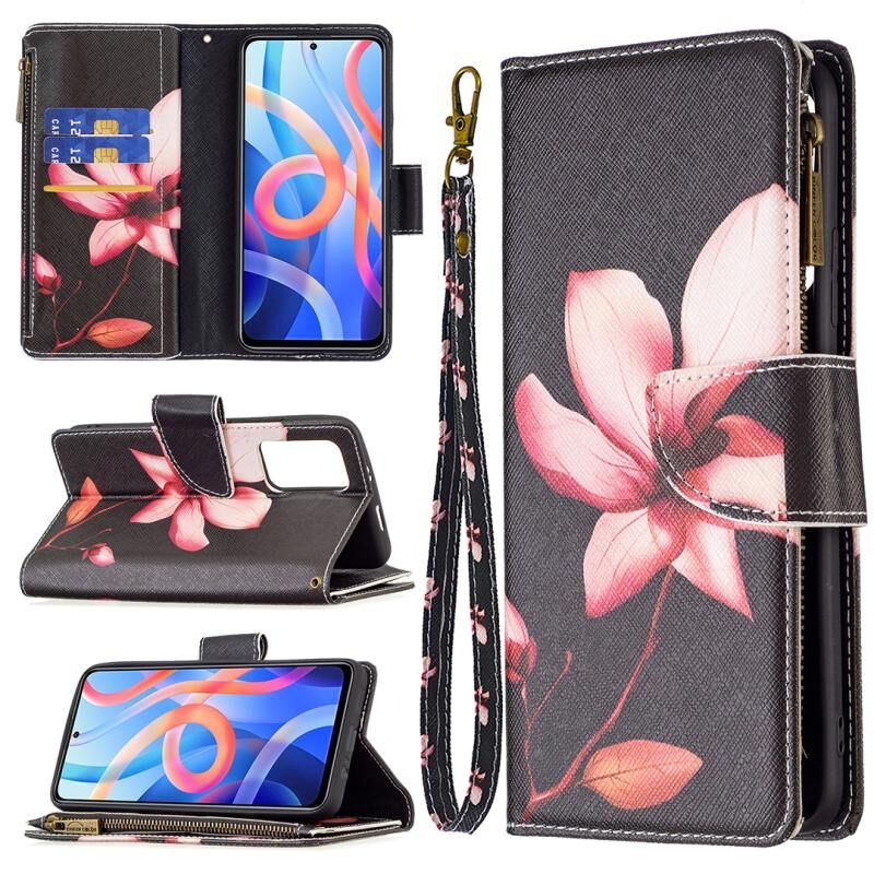 Θήκη τηλεφώνου από δέρμα με φερμουάρ και πολύχρωμο σχέδιο για Xiaomi Redmi Note 11 5G (Λωτός)