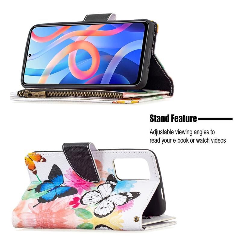 Θήκη τηλεφώνου από δέρμα με φερμουάρ και πολύχρωμο σχέδιο για Xiaomi Redmi Note 11 5G (Δύο Πεταλούδες)