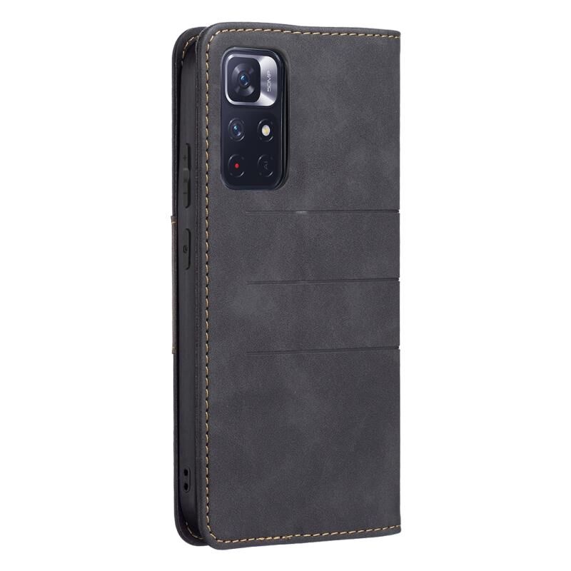 Για Xiaomi Redmi Note 11 5G Μαγνητική θήκη τηλεφώνου δερμάτινη (Μαύρο)