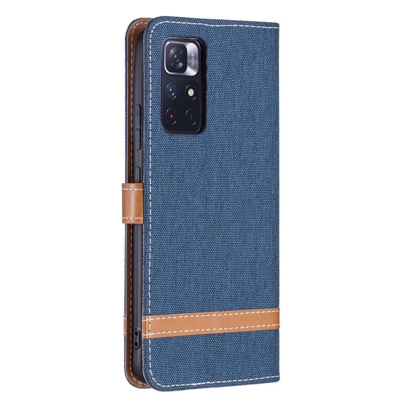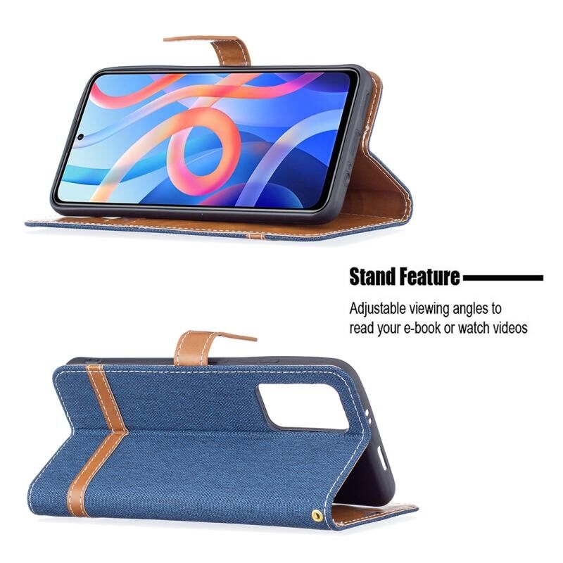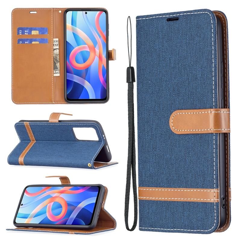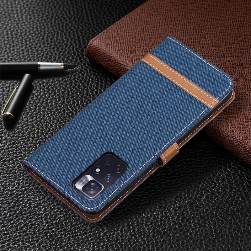 Για Xiaomi Redmi Note 11 5G/Note 11T 5G/Poco M4 Pro 5G Χρώμα Matching Denim Texture Δερμάτινη θήκη τηλεφώνου με θήκη & υποδοχές καρτών & πορτοφόλι & κορδόνι (Σκούρο μπλε)