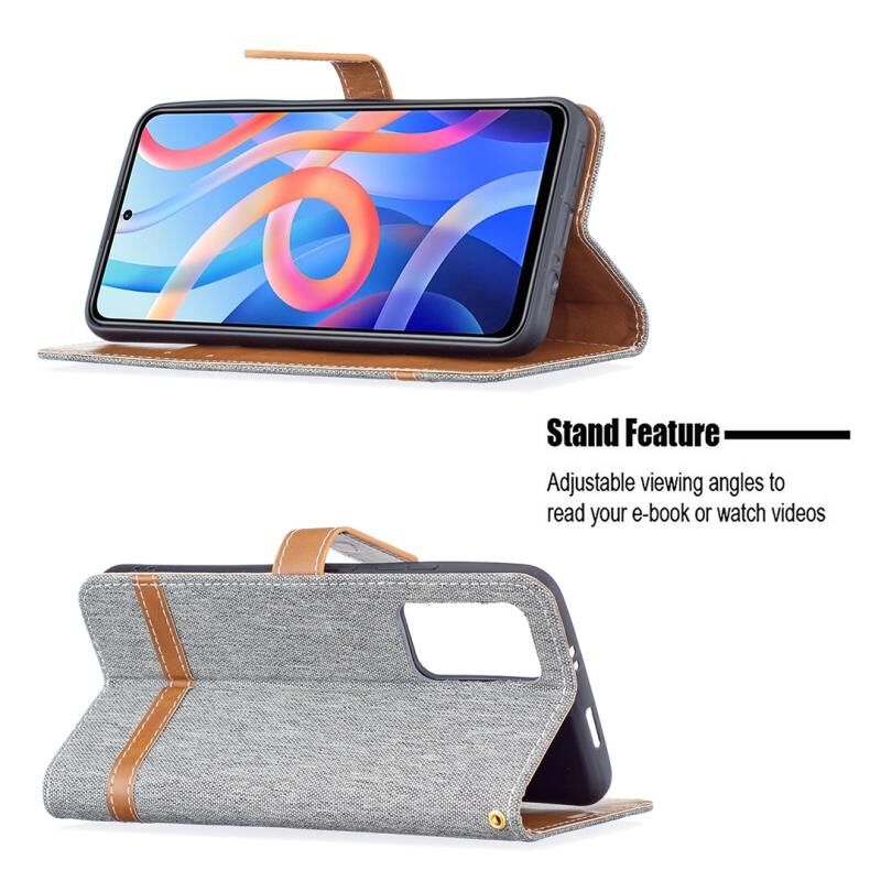 Για Xiaomi Redmi Note 11 5G/Note 11T 5G/Poco M4 Pro 5G Χρώμα Matching Denim Texture Δερμάτινη θήκη τηλεφώνου με θήκη & υποδοχές καρτών & πορτοφόλι & κορδόνι (Γκρι)