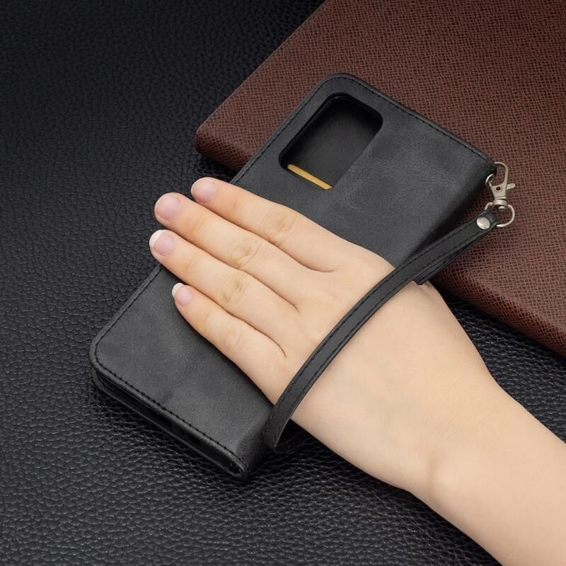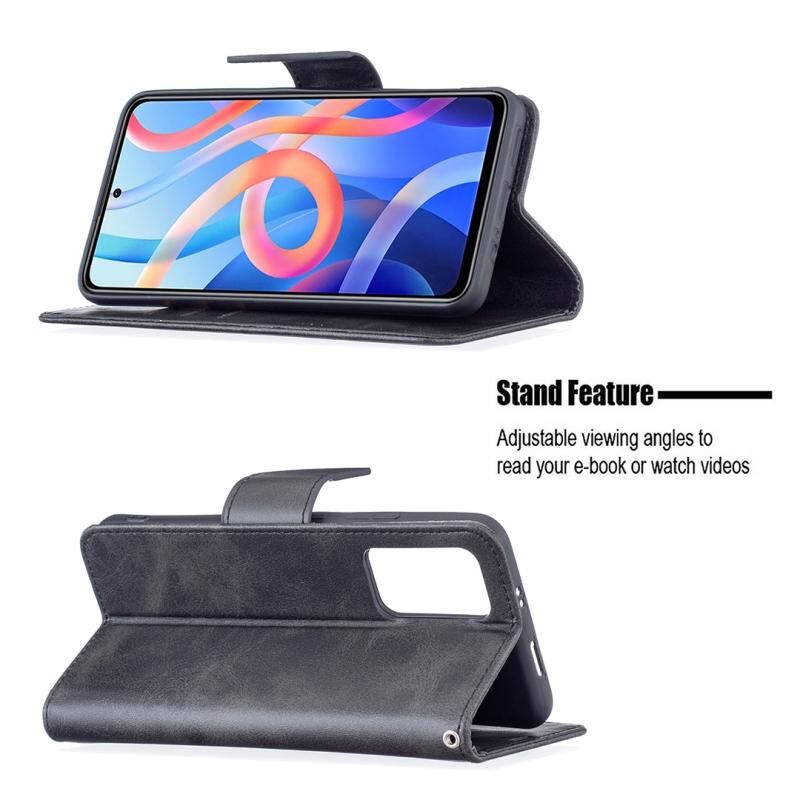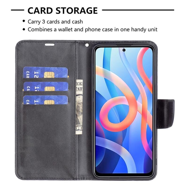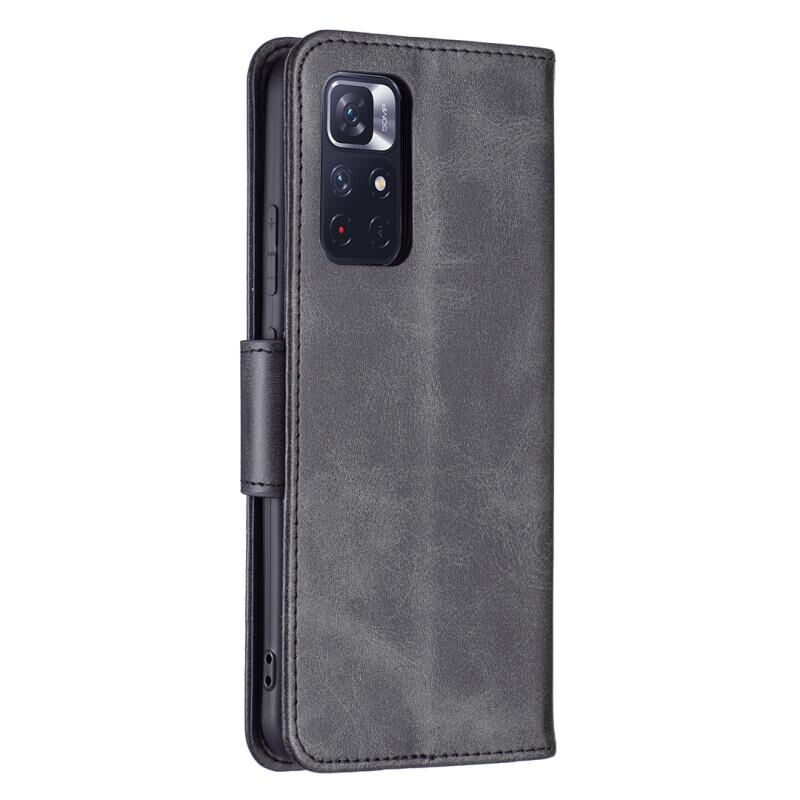 Για Xiaomi Redmi Note 11 5G/Note 11T 5G/Poco M4 Pro 5G Retro Lambskin Texture Pure Color Οριζόντια Flip δερμάτινη θήκη τηλεφώνου με θήκη & υποδοχές καρτών & πορτοφόλι & κορδόνι (μαύρο)