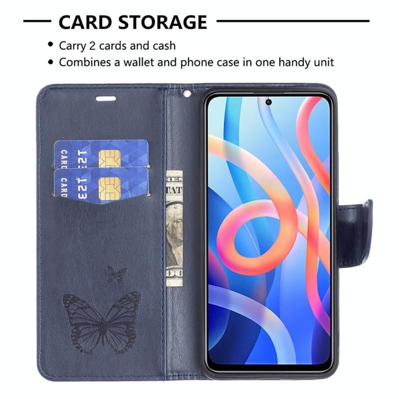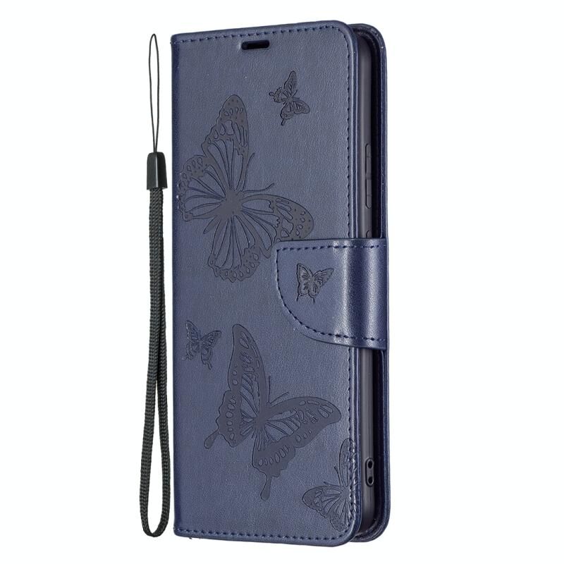 Για Xiaomi Redmi Note 11 5G/Note 11T 5G/Poco M4 Pro 5G Διπλό σχέδιο με ανάγλυφες πεταλούδες, οριζόντια θήκη από δέρμα με βάση στήριξης & υποδοχή κάρτας & πορτοφόλι & κορδόνι (Σκούρο Μπλε)