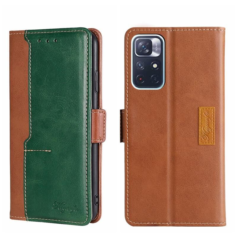 Για Xiaomi Redmi Note 11 5G / Poco M4 Pro 5G αντίθεση χρώμα πλευρά πόρπη δερμάτινη θήκη τηλεφώνου (ανοιχτό καφέ + πράσινο)