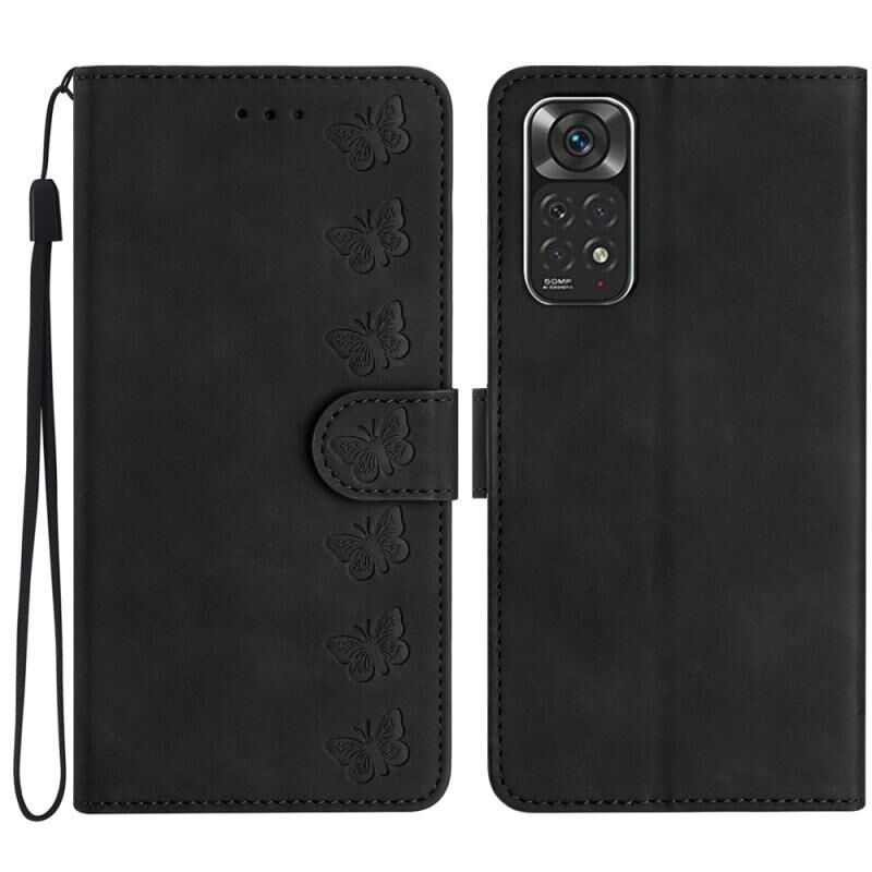 Για Xiaomi Redmi Note 11 5G Επτά πεταλούδες ανάγλυφη δερμάτινη θήκη τηλεφώνου (μαύρο)