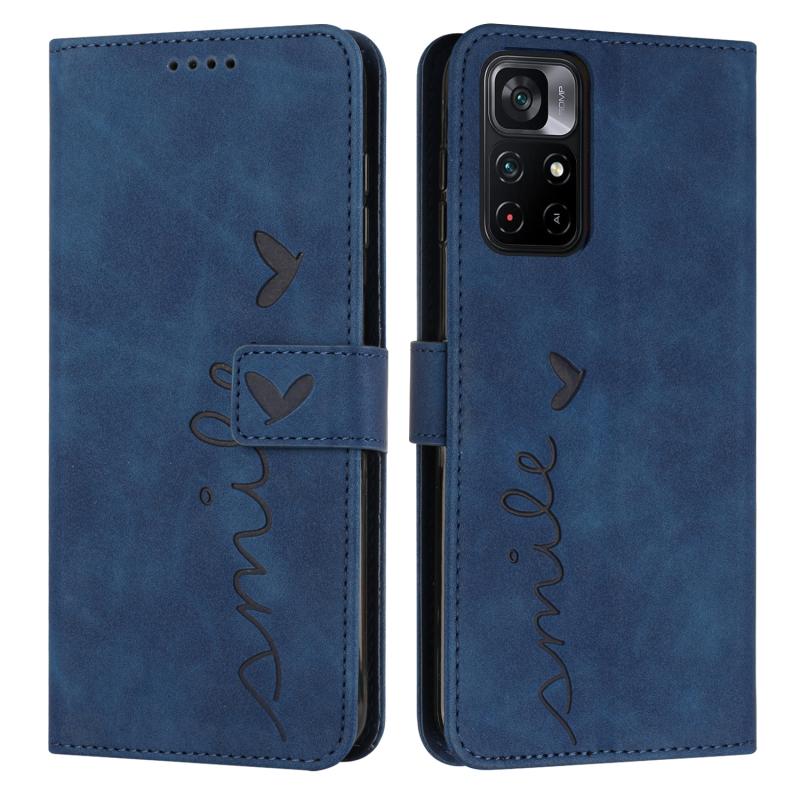 Θήκη δερμάτινη με σχέδιο καρδιάς για Xiaomi Redmi Note 11 5G (Μπλε)