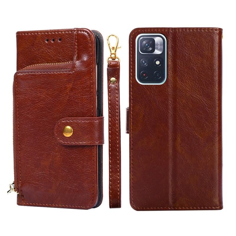 Για Xiaomi Redmi Note 11 5G/Xiaomi Poco M4 Pro 5G φερμουάρ τσάντα PU + TPU οριζόντια Flip δερμάτινη θήκη τηλεφώνου (καφέ)