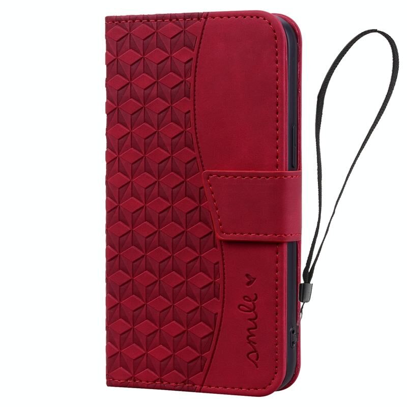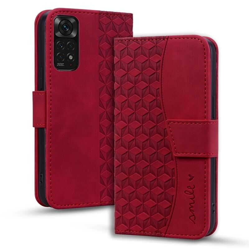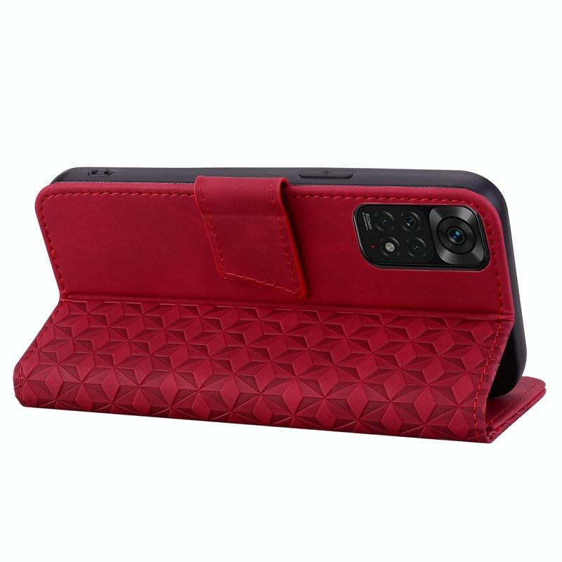 Για Xiaomi Redmi Note 11 Δερμάτινη Θήκη με Λουρί & Διαμαντένιο Κούμπωμα (Μπορντό)