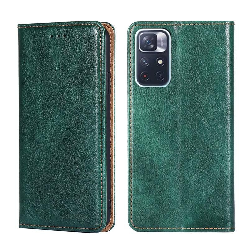 Για Xiaomi Redmi Note 11 Κίνα / Poco M4 Pro 5G Gloss Oil Solid Color Μαγνητική δερμάτινη θήκη τηλεφώνου (πράσινο)
