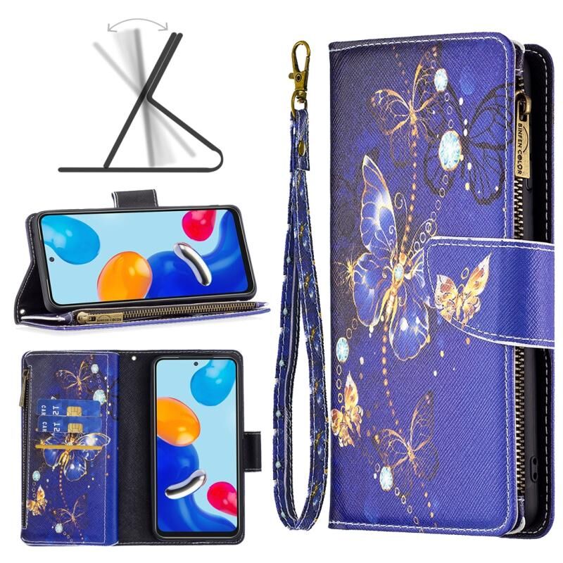Θήκη τηλεφώνου δερμάτινη με φερμουάρ και πολύχρωμο σχέδιο για Xiaomi Redmi Note 11 (Πεταλούδα Μωβ)