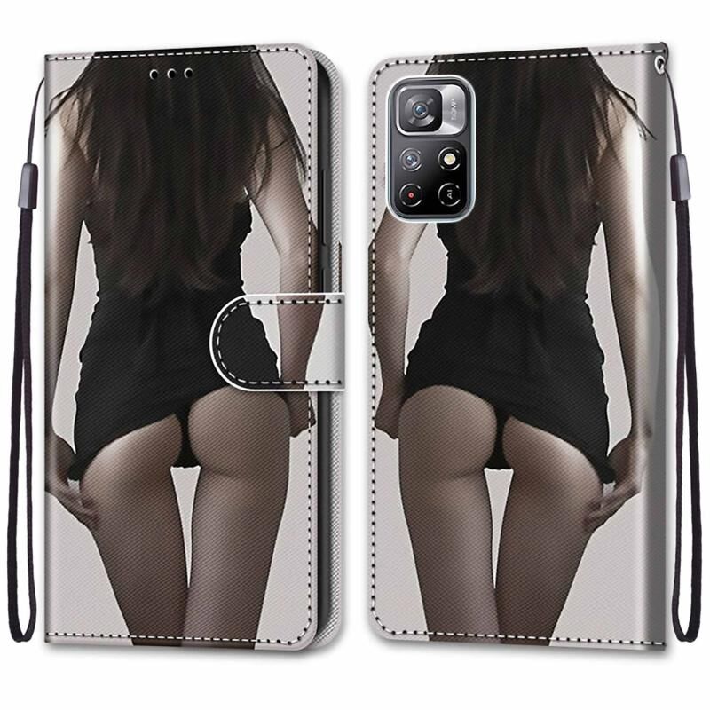 Για Xiaomi Redmi Note 11 Θήκη τηλεφώνου από δέρμα PU με σχέδιο, υφή σταυρού, οριζόντιο άνοιγμα, με βάση, θήκες για κάρτες, πορτοφόλι & κορδόνι (Πολύχρωμο στρώμα (μίνι φούστα)