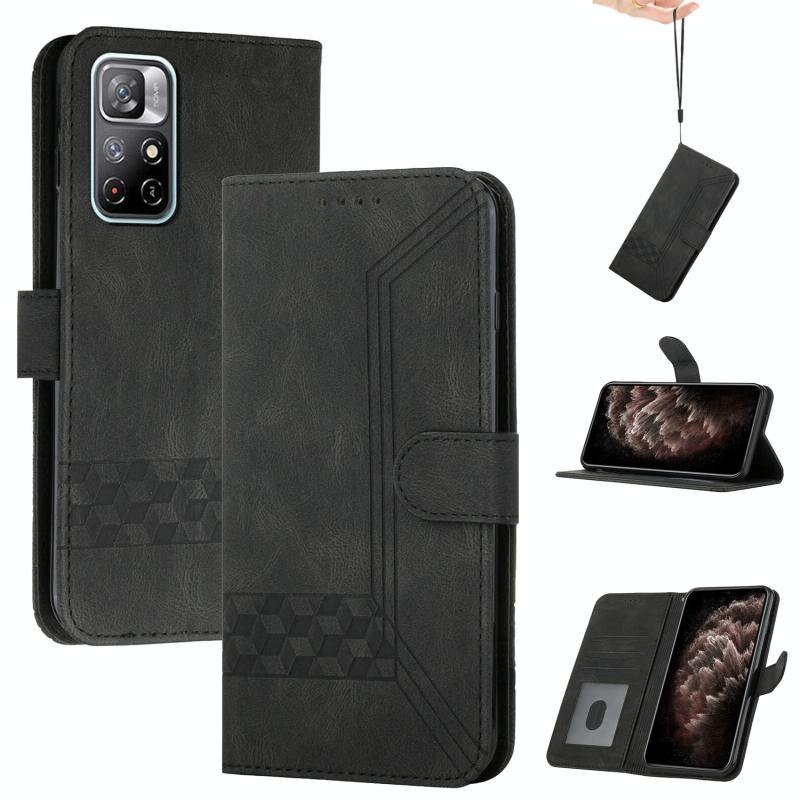 Για Xiaomi Redmi Note 11 Θήκη Δερμάτινη με Υφή Cubic Flip (Μαύρο)