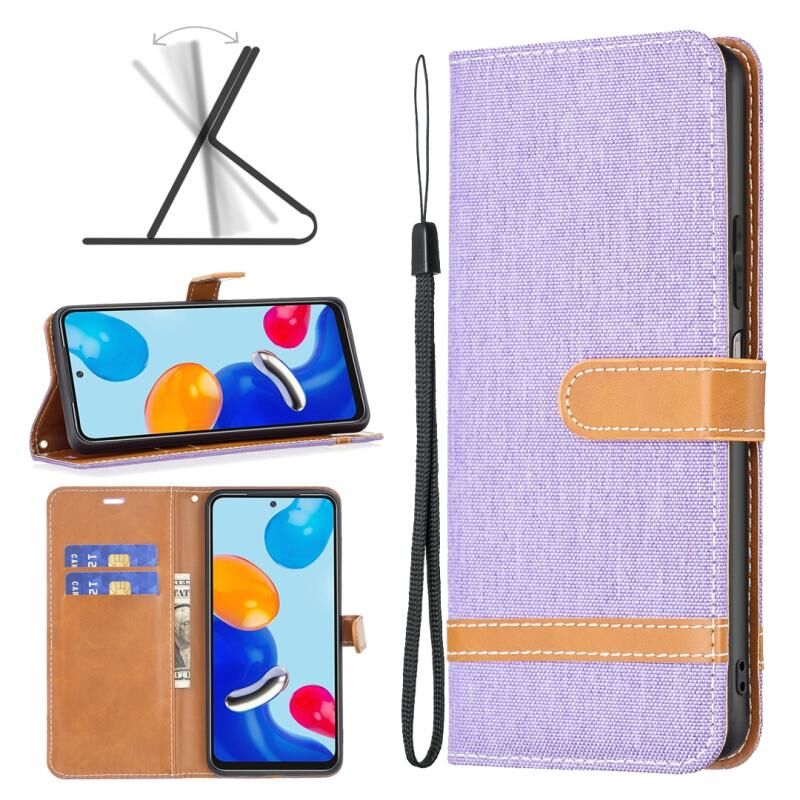 Για Xiaomi Redmi Note 11 Παγκόσμια χρώμα ταιριάζει Denim Υφή δερμάτινη θήκη τηλεφώνου (μωβ)