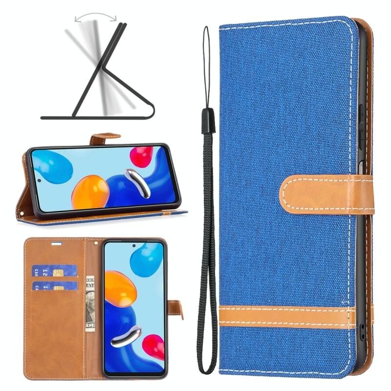 Για Xiaomi Redmi Note 11 Παγκόσμια χρώμα ταιριάζει Denim Υφή δερμάτινη θήκη τηλεφώνου (Royal Blue)