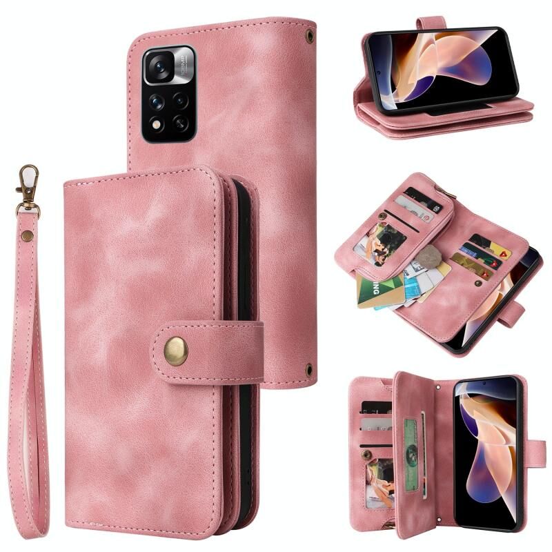 Για Xiaomi Redmi Σημείωση 11 Παγκόσμια πολυλειτουργική κάρτα Slot φερμουάρ πορτοφόλι δερμάτινη θήκη τηλεφώνου (Ροζ χρυσός)