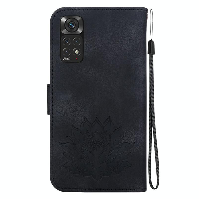 Για Xiaomi Redmi Note 11 Global / Note 11S Lotus ανάγλυφη δερμάτινη θήκη τηλεφώνου (Μαύρο)