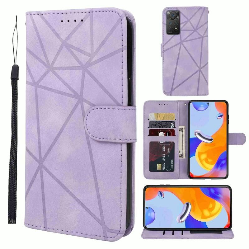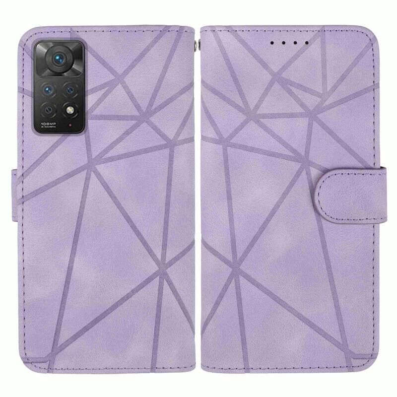 Για Xiaomi Redmi Note 11 Παγκόσμια αίσθηση δέρματος γεωμετρικές γραμμές δερμάτινη θήκη τηλεφώνου (μωβ)