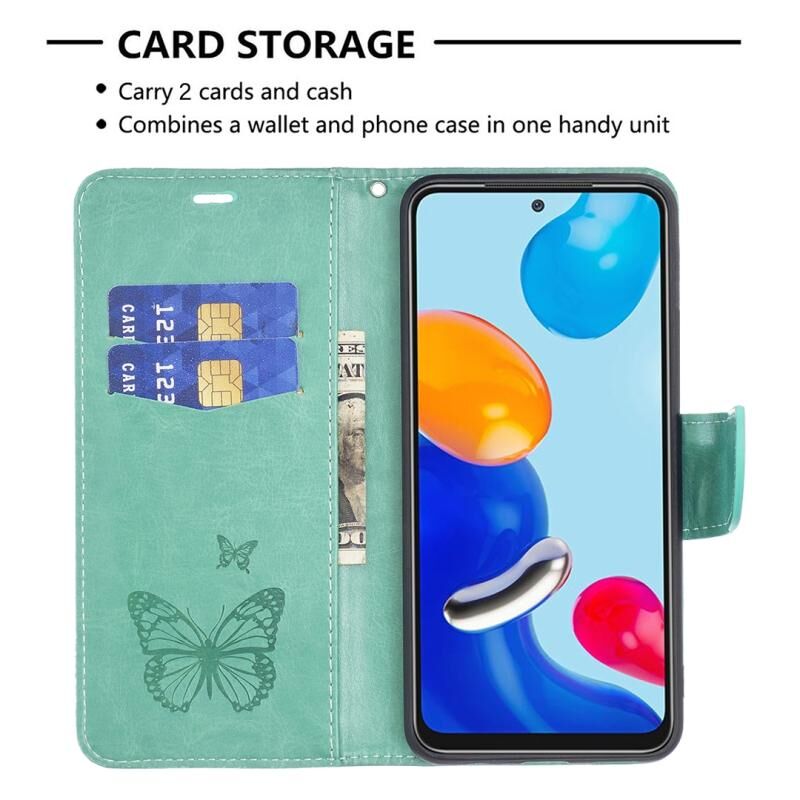 Θήκη τηλεφώνου δερμάτινη με ανάγλυφο σχέδιο δύο πεταλούδων για Xiaomi Redmi Note 11 Global (πράσινο)