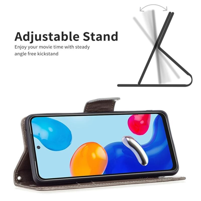 Θήκη τηλεφώνου δερμάτινη με ανάγλυφο σχέδιο δύο πεταλούδων για Xiaomi Redmi Note 11 Global (Γκρι)
