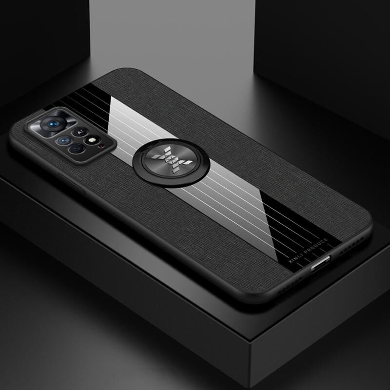 Θήκη κινητού τηλεφώνου TPU με υφή υφάσματος Stitching XINLI για Xiaomi Redmi Note 11 Global με δακτύλιο στήριξης (Μαύρο) (Μαύρο)