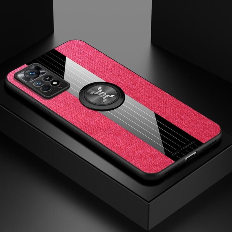 Θήκη κινητού τηλεφώνου TPU με υφή υφάσματος Stitching XINLI για Xiaomi Redmi Note 11 Global με δακτύλιο στήριξης (Μαύρο) (Κόκκινο)