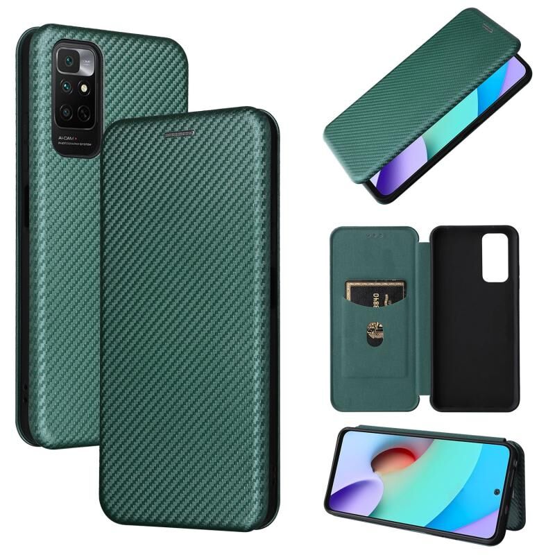 Για Xiaomi Redmi Σημείωση 11 / Σημείωση 11S Παγκόσμια Carbon Fiber Υφή Οριζόντια Flip PU τηλέφωνο υπόθεση (πράσινο)