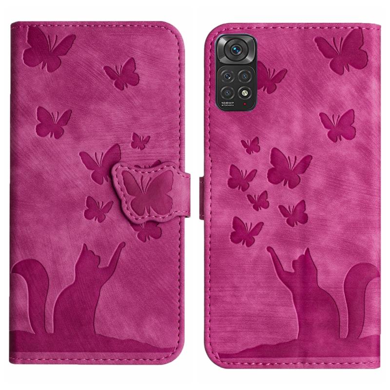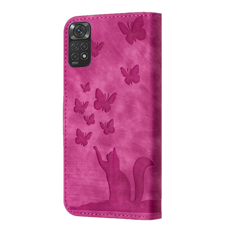 Θήκη δερμάτινη flip με σχέδιο πεταλούδας και γάτας για Xiaomi Redmi Note 11/Note 12S 4G Global. (Ροζ)