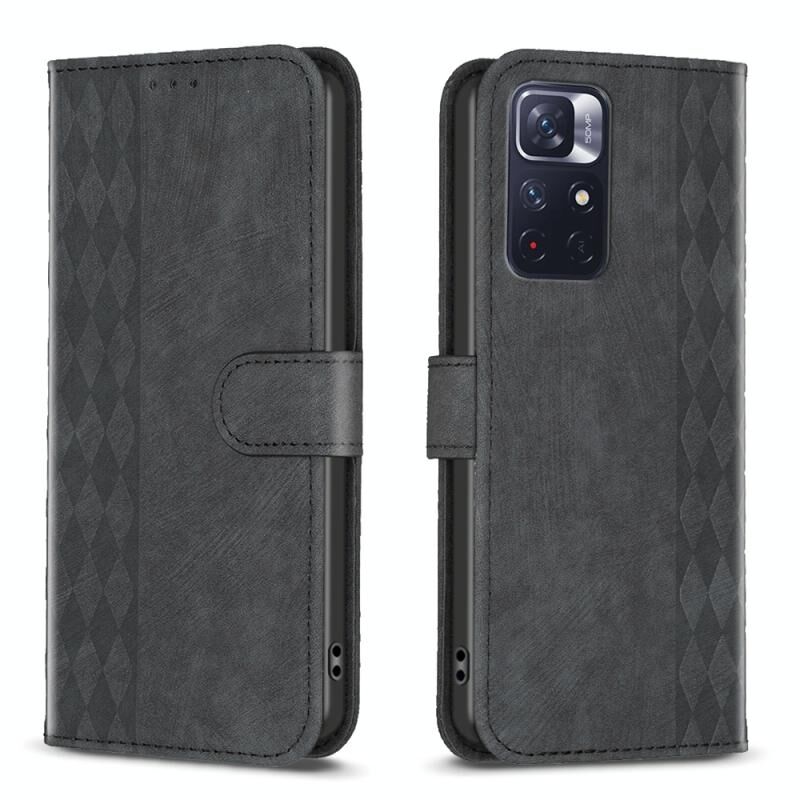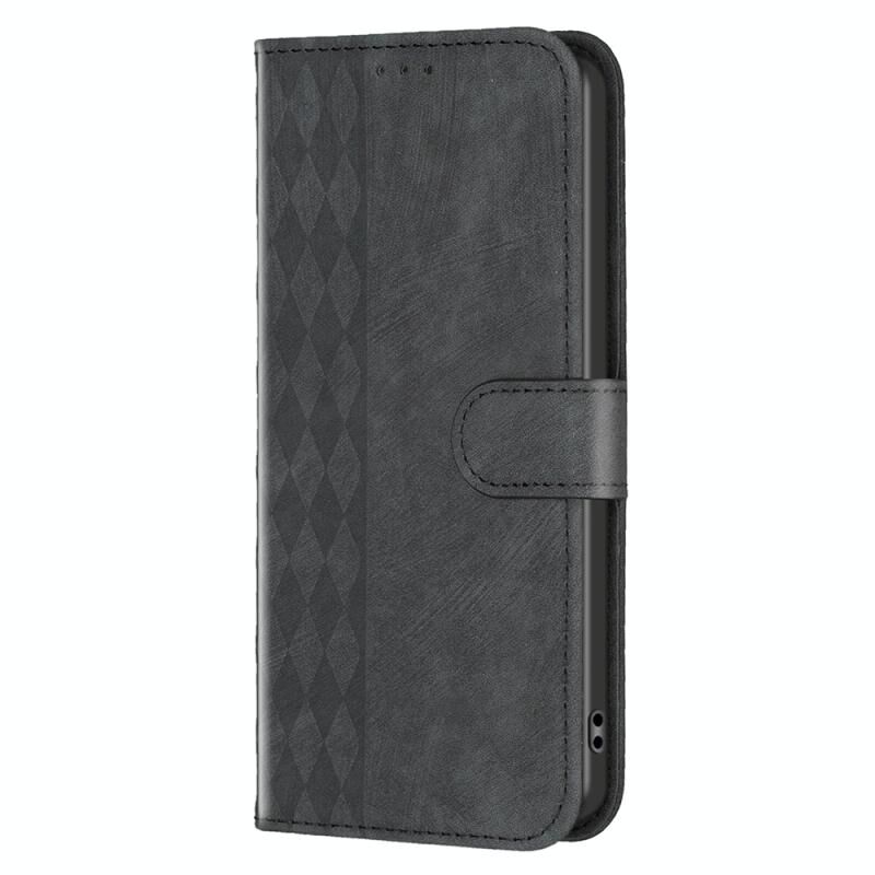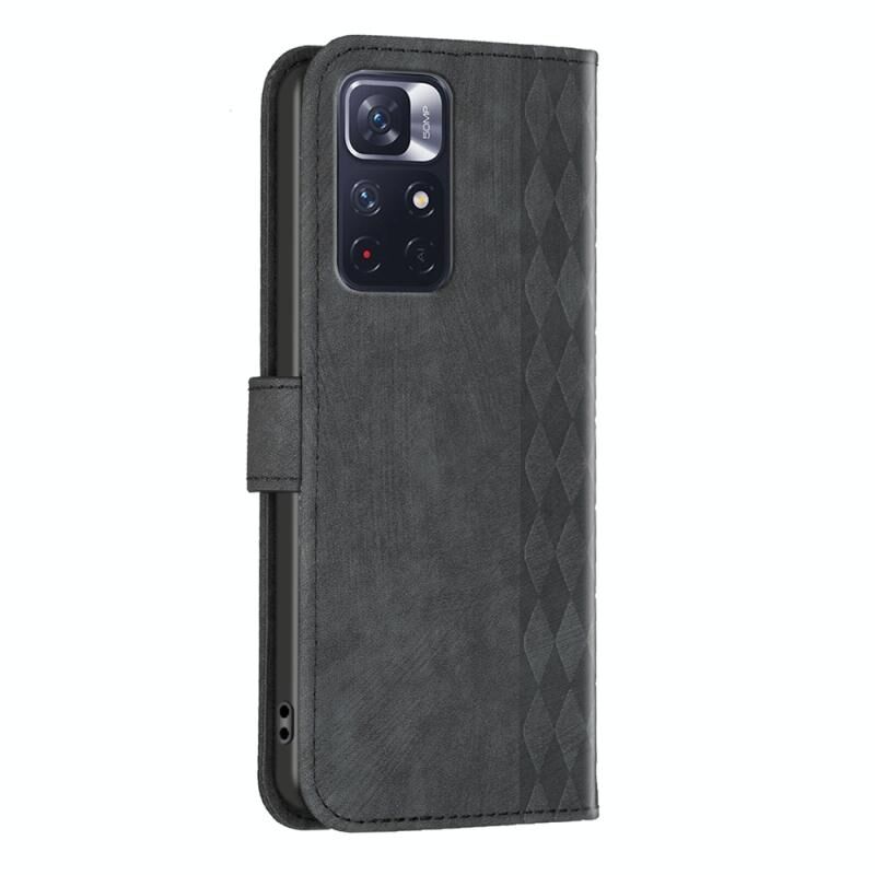 Για Xiaomi Redmi Note 11 καρό ανάγλυφη δερμάτινη θήκη τηλεφώνου (μαύρο)