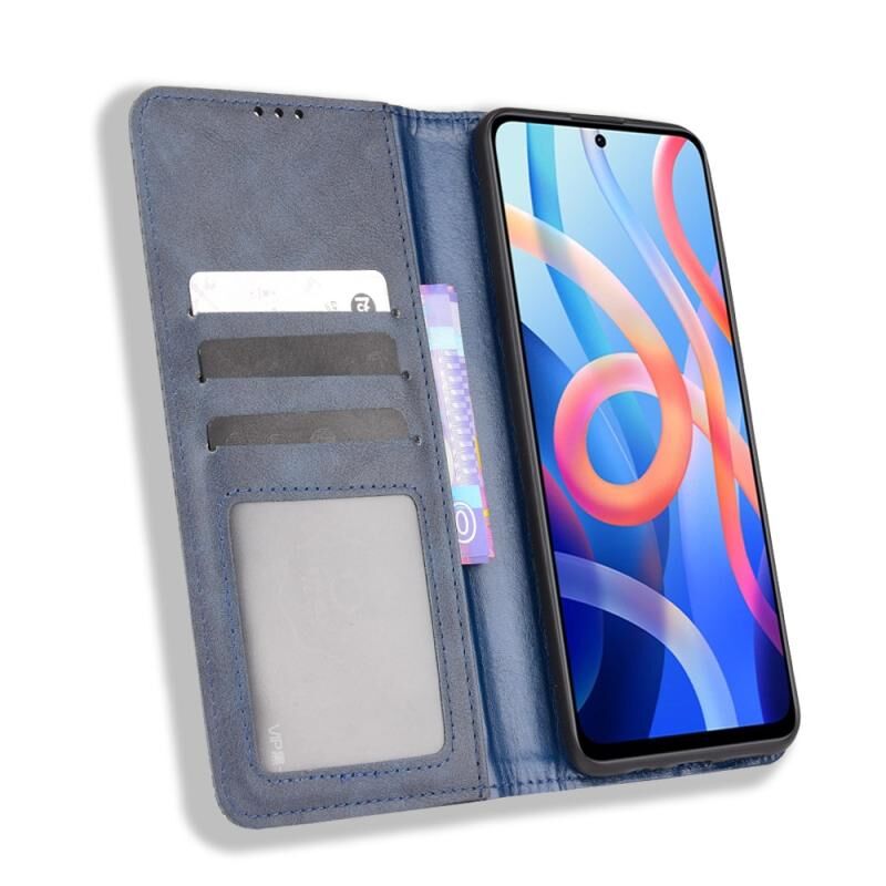 Για Xiaomi Redmi Note 11 / Poco M4 Pro Μαγνητική πόρπη Retro Υφή δερμάτινη θήκη (μπλε)
