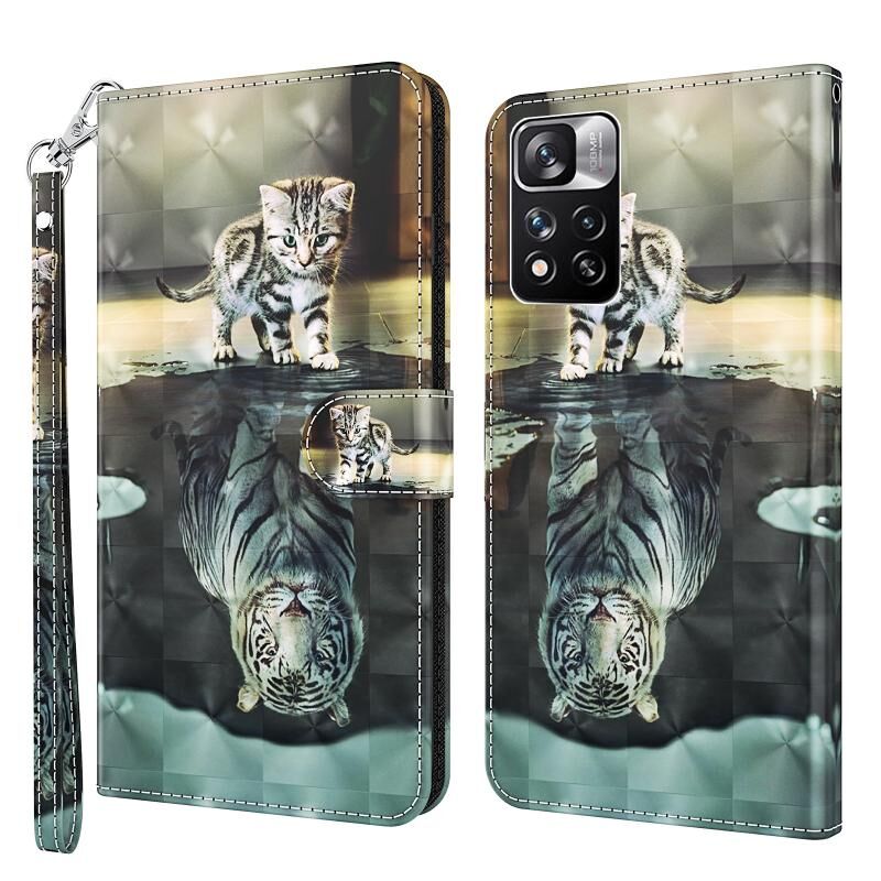 Θήκη τηλεφώνου για Xiaomi Redmi Note 11 Pro / 11 Pro+ με σχέδιο 3D ζωγραφικής, TPU + Δερμάτινη PU (Γάτα, Τίγρης)