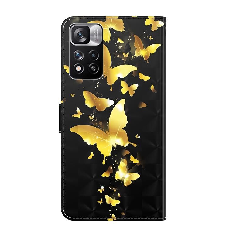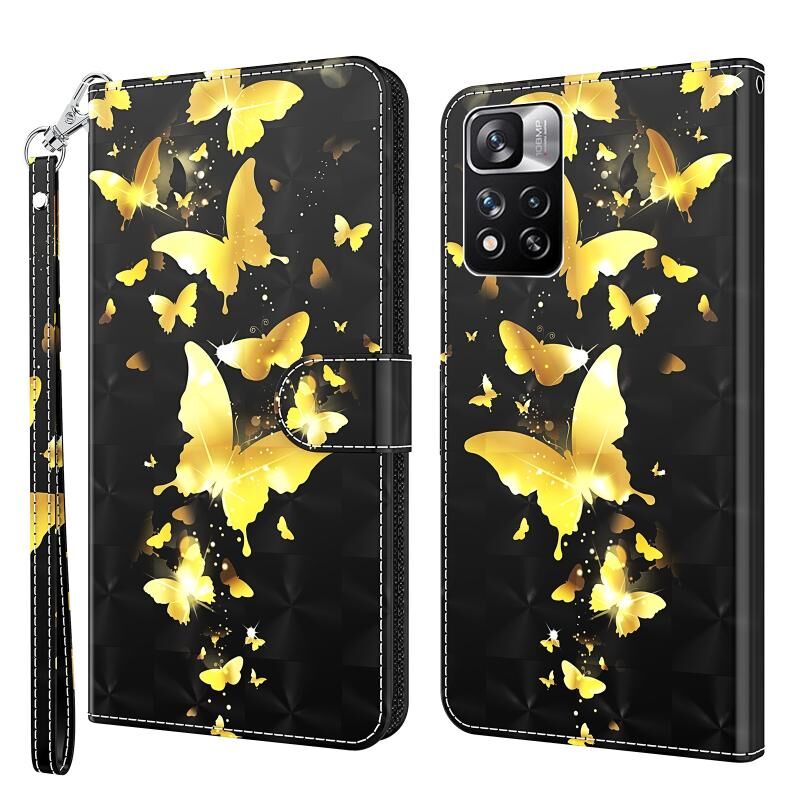 Θήκη κινητού τηλεφώνου για Xiaomi Redmi Note 11 Pro / 11 Pro+ με σχέδιο 3D ζωγραφικής, TPU + PU δέρμα (Χρυσή Πεταλούδα)