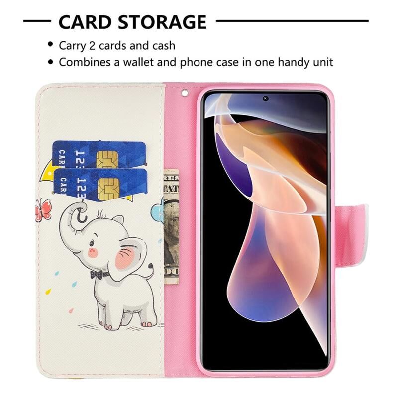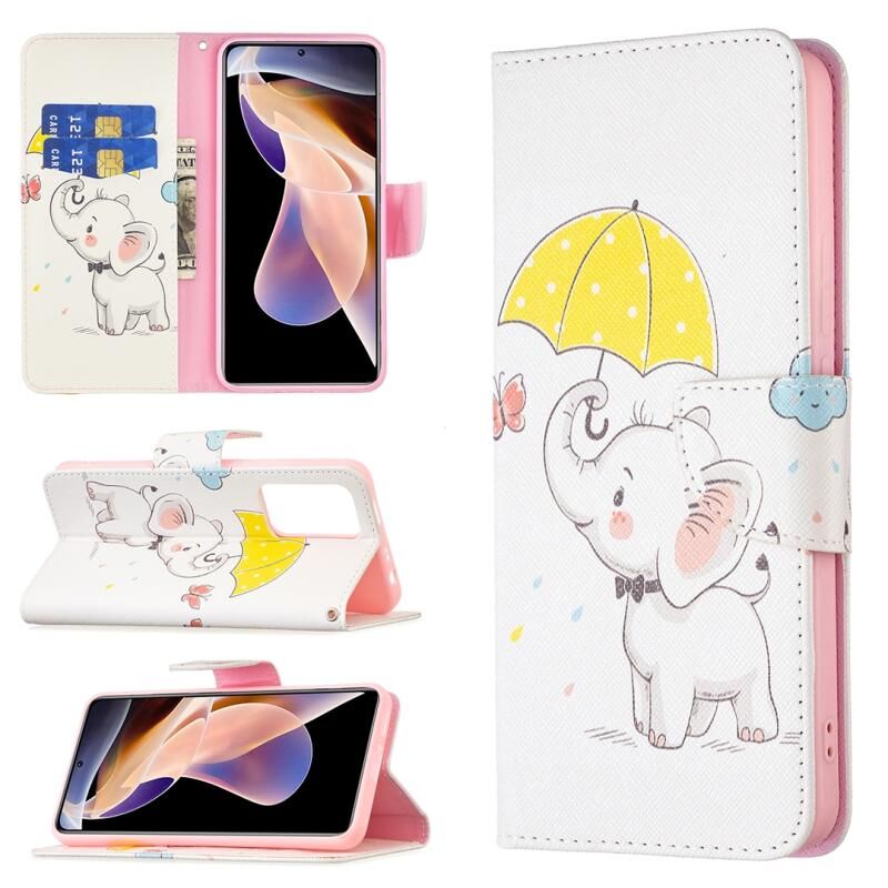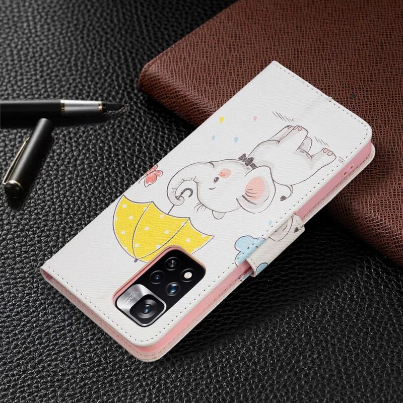 Θήκη τηλεφώνου από δέρμα με έγχρωμο σχέδιο για Xiaomi Redmi Note 11 Pro / 11 Pro+ (Ομπρέλα Ελέφαντας)