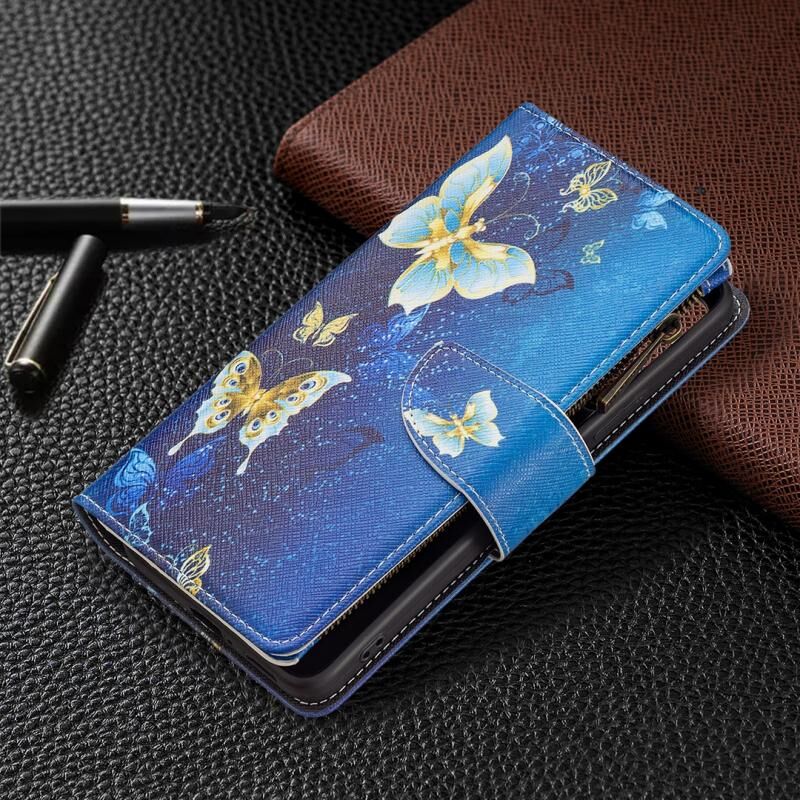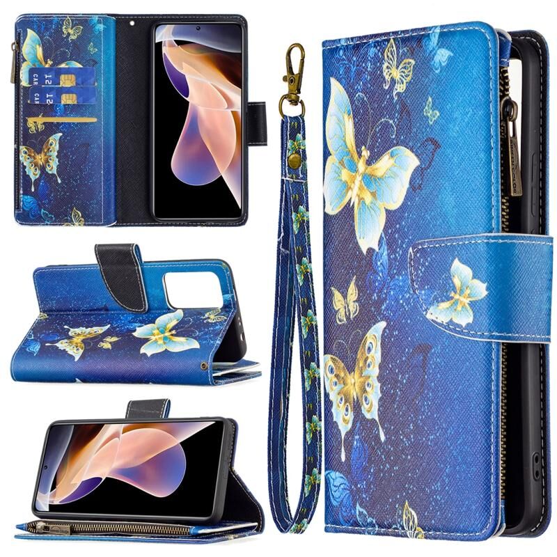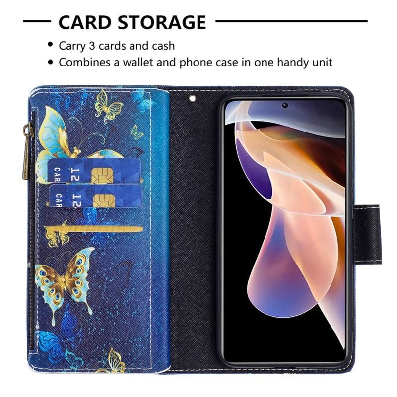Θήκη τηλεφώνου από δέρμα με φερμουάρ και πολύχρωμο σχέδιο για Xiaomi Redmi Note 11 Pro / 11 Pro+ (Χρυσή Πεταλούδα)