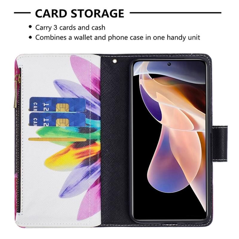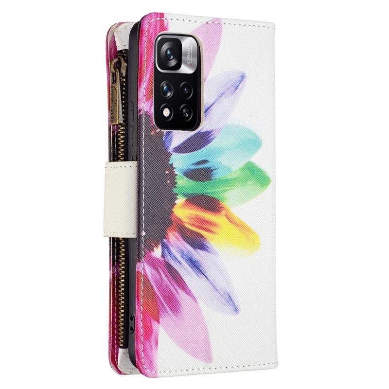 Θήκη τηλεφώνου από δέρμα με φερμουάρ και πολύχρωμο σχέδιο για Xiaomi Redmi Note 11 Pro / 11 Pro+ (Ηλίανθος)