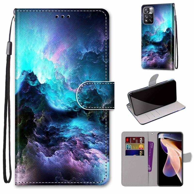 Θήκη τηλεφώνου από δέρμα με οριζόντιο άνοιγμα για Xiaomi Redmi Note 11 Pro/11 Pro+ με πολύχρωμο σχέδιο, ανάγλυφη υφή, βάση στήριξης, θήκες για κάρτες, πορτοφόλι και κορδόνι (Πολύχρωμα Σύννεφα). (Κόκκινο)