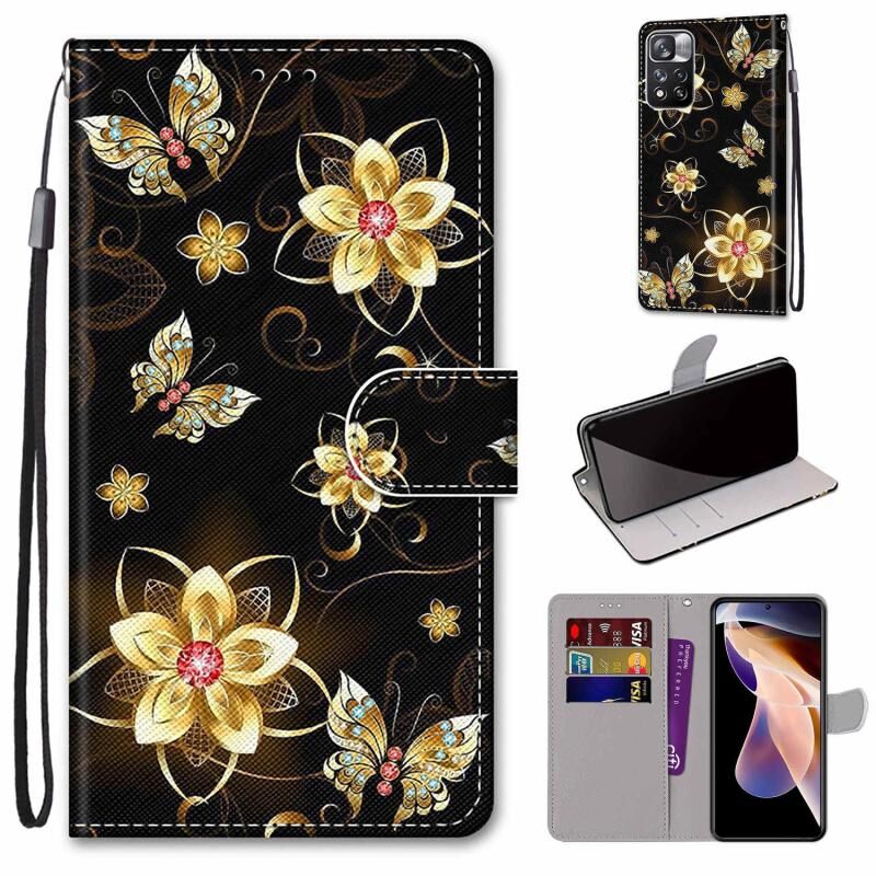 Θήκη τηλεφώνου δέρμα κατασκευής οριζόντιας αναδίπλωσης για Xiaomi Redmi Note 11 Pro/11 Pro+ με σχέδιο πολύχρωμης ζωγραφικής, ανάγλυφη υφή, βάση στήριξης, θήκες καρτών, πορτοφόλι και κορδόνι (Ροζ Λουλούδια, Γέφυρα του Πύργου).