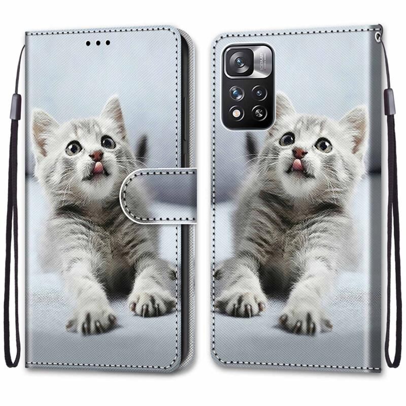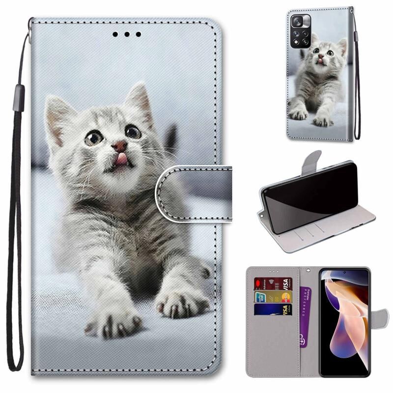 Θήκη τηλεφώνου δέρμα κατασκευής οριζόντιας αναδίπλωσης για Xiaomi Redmi Note 11 Pro/11 Pro+ με σχέδιο πολύχρωμης ζωγραφικής, ανάγλυφη υφή, βάση στήριξης, θήκες καρτών, πορτοφόλι και κορδόνι (Ροζ Λουλούδια, Γέφυρα του Πύργου).