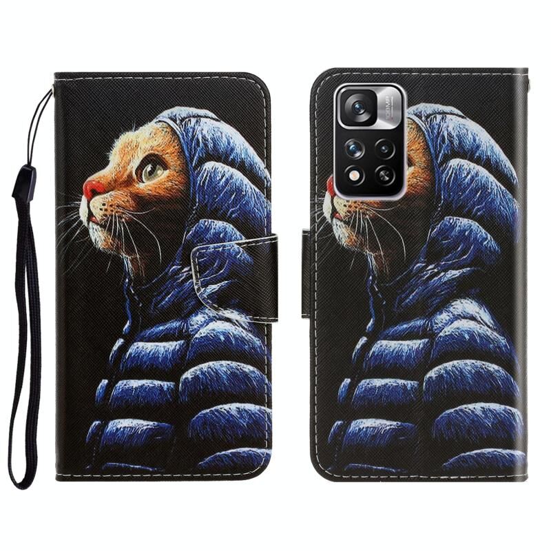 Θήκη τηλεφώνου δερμάτινη, οριζόντιας αναδίπλωσης, με έγχρωμη τρισδιάστατη σχεδίαση για Xiaomi Redmi Note 11 Pro (Γάτα με πουπουλένιο μπουφάν)