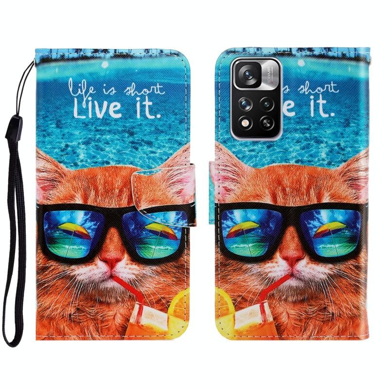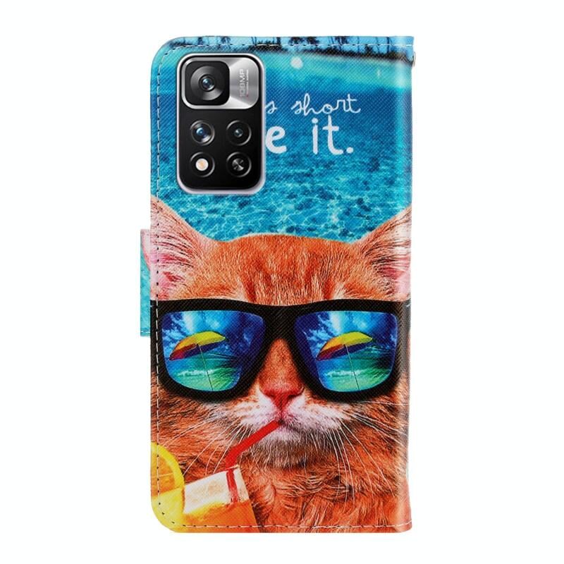 Θήκη τηλεφώνου δερμάτινη, οριζόντιας αναδίπλωσης, με έγχρωμη τρισδιάστατη σχεδίαση για Xiaomi Redmi Note 11 Pro (Γάτα κάτω από το νερό)